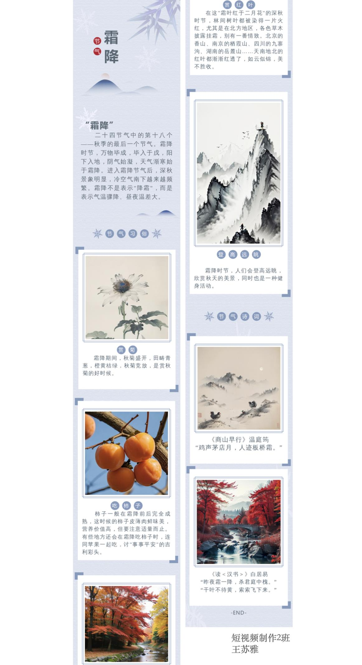 本次线上展览集中展示了传媒学院学子们围绕六大主题——节日节气、校园、文化、预防倡导、科普、健康养生所创作的精彩长图推送设计。 从独特视角出发,学生们巧妙融合创意与技艺,用一幅幅生动鲜活的长图,讲述着节日的温馨、校园的故事、预防的重要、科普的趣味、文化的深邃、养生的智慧。这些作品不仅展现了学生们扎实的专业技能,更体现了他们对社会生活的敏锐洞察和深刻思考。 让我们一同走进这场视觉盛宴,感受创意的火花,见证传媒新星的璀璨绽放!在这里,每一幅作品都是一个故事,每一段文案都蕴含深意,期待您的品鉴与共鸣。 一、节日节气主题 指导教师:孔乔星 审核:石冰清 编辑:杨安易 排版:李思莹