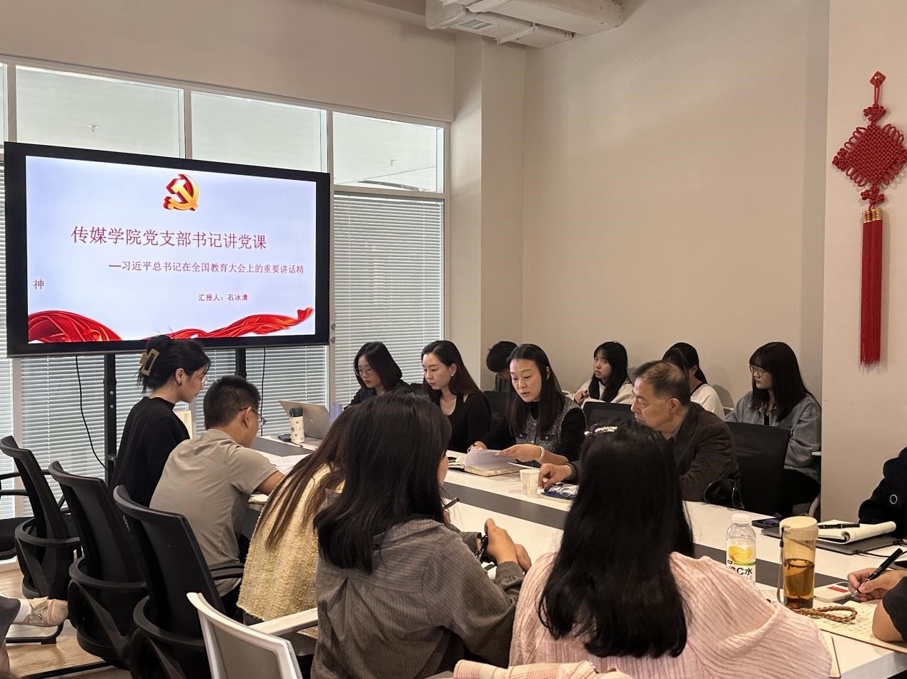 为扎实推进学院党建工作,加强学习教育,提升学院党员老师整体站位,10 月 9 日下午,传媒学院党支部在艺术中心207召开党员学习会议。传媒学院院长崔勇、党支部副书记石冰清,及传媒学院全体教师参加此次会议。 本次会议,石书记围绕“汇聚全党全社会合力加快建设教育强国——九论学习贯彻习近平总书记在全国教育大会上的重要讲话精神”展开主题教育。石书记强调,教育是国之大计、党之大计,加快建设教育强国,是全面建成社会主义现代化强国的战略先导。结合我院实际,广大党员教师更要立足本职工作,做好教育教学规划,聚焦立德树人根本任务,扎实推进学院各项工作顺利开展。在石书记的领学下,全体教师认真贯彻习近平总书记重要讲话精神,深刻认识到建设教育强国的重大意义。要以实际行动为教育强国建设贡献力量,坚持为党育人、为国育才,全面提高人才培养质量,提升学生自主学习能力,培养德智体美劳全面发展的社会主义建设者和接班人。 此次党员学习会议,为传媒学院加强专业建设、提高教学质量提供契机,学院将利用专业优势传播教育强国理念,积极与周边经济产业合作,为教育强国营造良好舆论氛围,贡献传媒力量。 审核:石冰清 初审:杨安易、宋晓焱 编辑:张孟 排版:刘梦菡