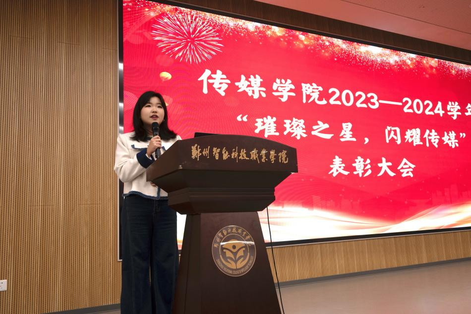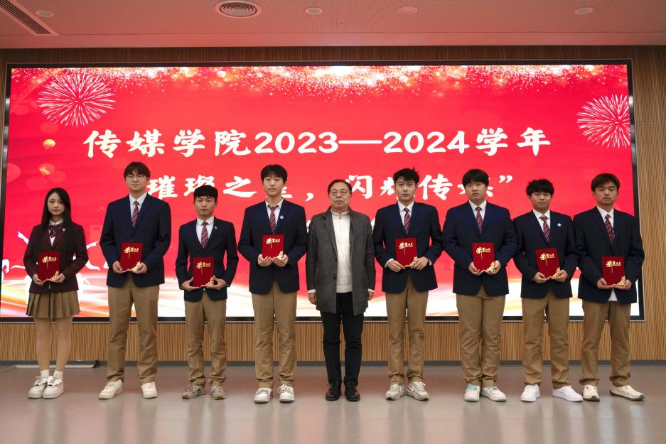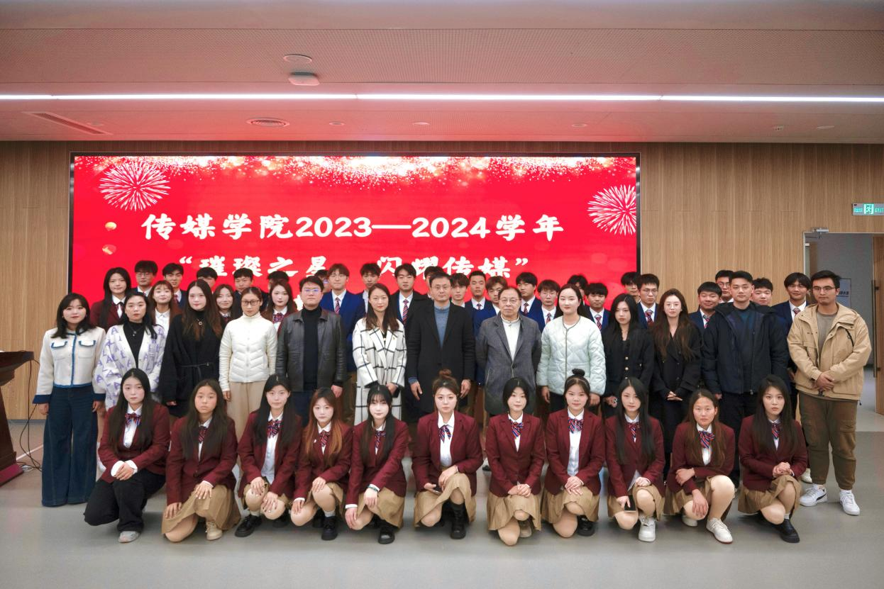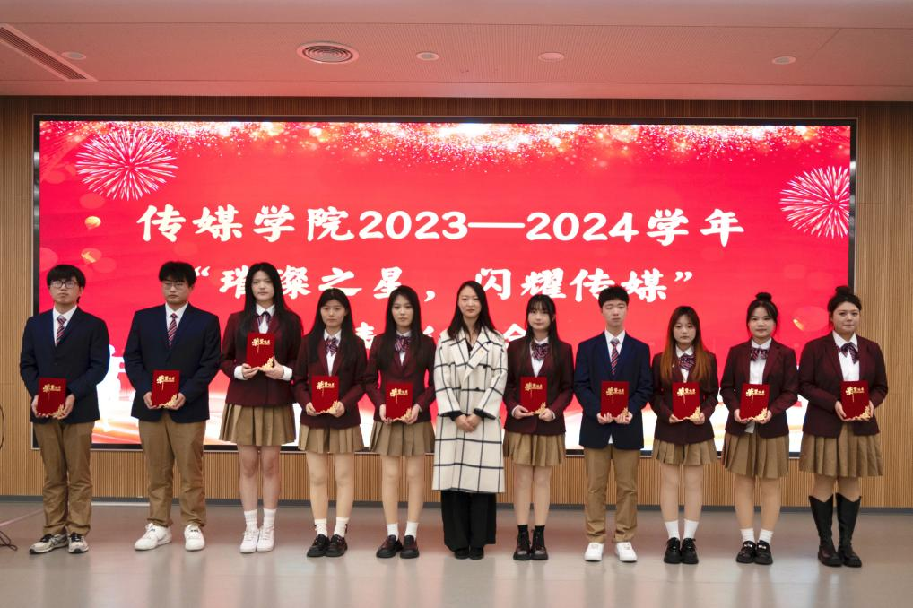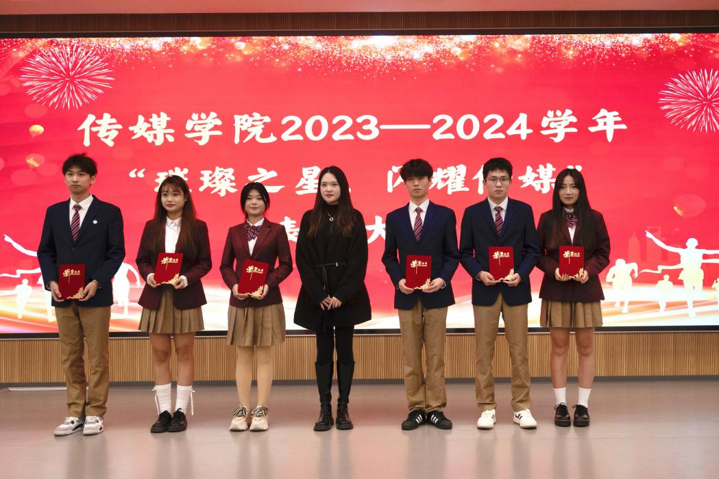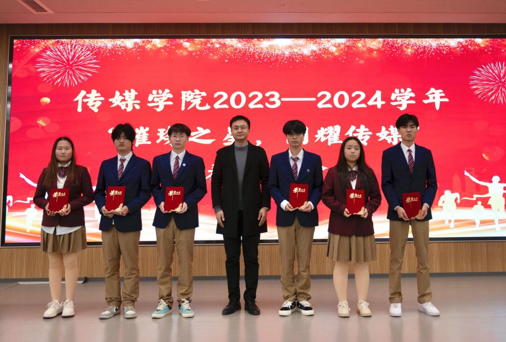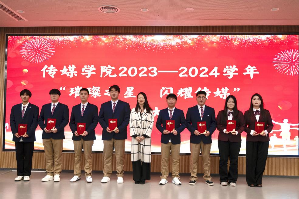 为构建学院积极向上的氛围,通过表彰先进,树立榜样,激励全院学生向榜样看齐,促进学院学风、院风建设。11月21日下午,传媒学院在多闻厅101举办“璀璨之星,闪耀传媒”2023—2024学年表彰大会。学生工作处处长、校团委书记秦鹏、传媒学院院长崔勇、党支部副书记、学管副院长石冰清、校团委学生处相关老师及传媒学院全体辅导员参加本次会议,会议由杨安易主持。 崔院长致辞 2023级学生代表孙姝涵发言 石院长宣读传媒学院关于表彰的决定 秦处长总结讲话 与会领导分别为获奖的同学颁发了荣誉证书并合影留念。 本次活动共有六项议程。首先崔院长在致辞中提出希望同学们戒骄戒躁,着力提升专业素养,树立坚定理想信念。要勤奋学习,积极投身实践并勇于开拓创新。接着,学生代表孙姝涵代表获奖学生表态发言。随后,由石院长宣读表彰文件。最后,秦处长在总结讲话中给学生们提出了五点希望:一要坚定信念、树立远大理想;二要勤奋学习、追求卓越;三要乐于实践、开拓创新;四要团结协作、培育团队精神;五要坚持锻炼、保持身心健康,为学院发展争光添彩。表彰活动在同学们热情的掌声中圆满落幕。 这次活动不仅表彰了在多元领域内表现优异的学生代表,更在学院内树立了一批积极向上的典范。这些榜样以实际行动诠释了传媒精神,为进一步推动传媒学院优良学风与院风的建设,培养具备专业素养与社会责任感的传媒人才奠定坚实基础。 (图文、视频来源:赵文娇、蒋子康、张乐、崔思科) 审核:石冰清 编辑:杨安易 排版:张奥