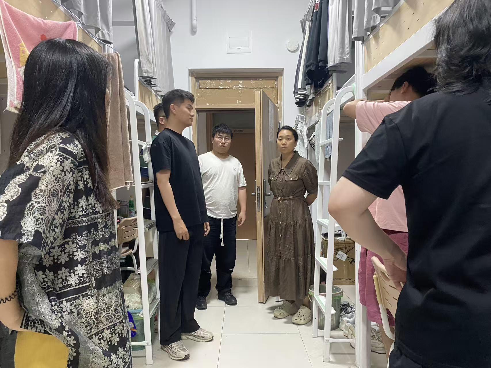 为保障端午节假期后学生宿舍安全有序,深入掌握学生返校动态,6月2日晚,传媒学院"一站式"学生社区全体辅导员开展端午节后宿舍走访活动,为学生营造安全温馨的学习生活环境。 走访过程中,辅导员们深入了解了学生的返校情况,随后重点排查违规电器使用、电线私拉乱接等安全隐患,对于卫生死角、物品杂乱等问题现场指导整改。针对夏季高温潮湿易滋生细菌的特点,特别提醒大家注意饮食卫生,保持宿舍通风干燥,做好蚊虫防护;同时鼓励同学们制定合理作息规划,以饱满的精神状态投入期末复习。 此次宿舍走访活动,不仅全面掌握了学生宿舍管理现状与学生在校生活状态,为校园安全管理筑牢防线,还搭建起师生之间沟通交流的良好平台。后续,学院将进一步完善"日常巡查+重点抽查"机制,结合学生需求开展安全教育活动,推动宿舍管理与思政教育深度融合,以精细化服务助力学生成长,切实筑牢校园安全防线。 审核:石冰清 初审:赵梦梦 编辑:宋晓焱 排版:李思莹