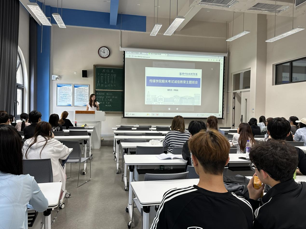 为扎实做好学期末考风考纪与学风建设工作,强化诚信考试教育,确保考试公平公正,营造良好学习氛围。近日,传媒学院“一站式”学生社区全体辅导员在朝新楼召开了“铸诚信之魂,树考纪新风”主题班会。 班会上,辅导员们一方面结合学科特点,向同学们传授高效复习策略,指导制定科学的学习计划,帮助合理规划时间,攻克知识难点;另一方面,着重强调考试规章制度,通过典型案例剖析考试舞弊的严重后果,告诫同学们严守考纪红线,以诚信为笔、以真才实学为墨,书写期末答卷。最后,辅导员鼓励大家调整心态,以自信从容的姿态迎接考试挑战,共同维护校园诚信考风。 本次诚信考试主题教育活动的开展,进一步巩固了同学们的诚信意识、塑造了诚信品质、弘扬了诚信之风。传媒学院也将加强考前教育与考试秩序管理,推动诚信育人工作走深走实,强化学院诚信学风建设,营造风清正气的校园氛围。 审核:石冰清 初审:赵梦梦 编辑:宋晓焱 排版:李思莹