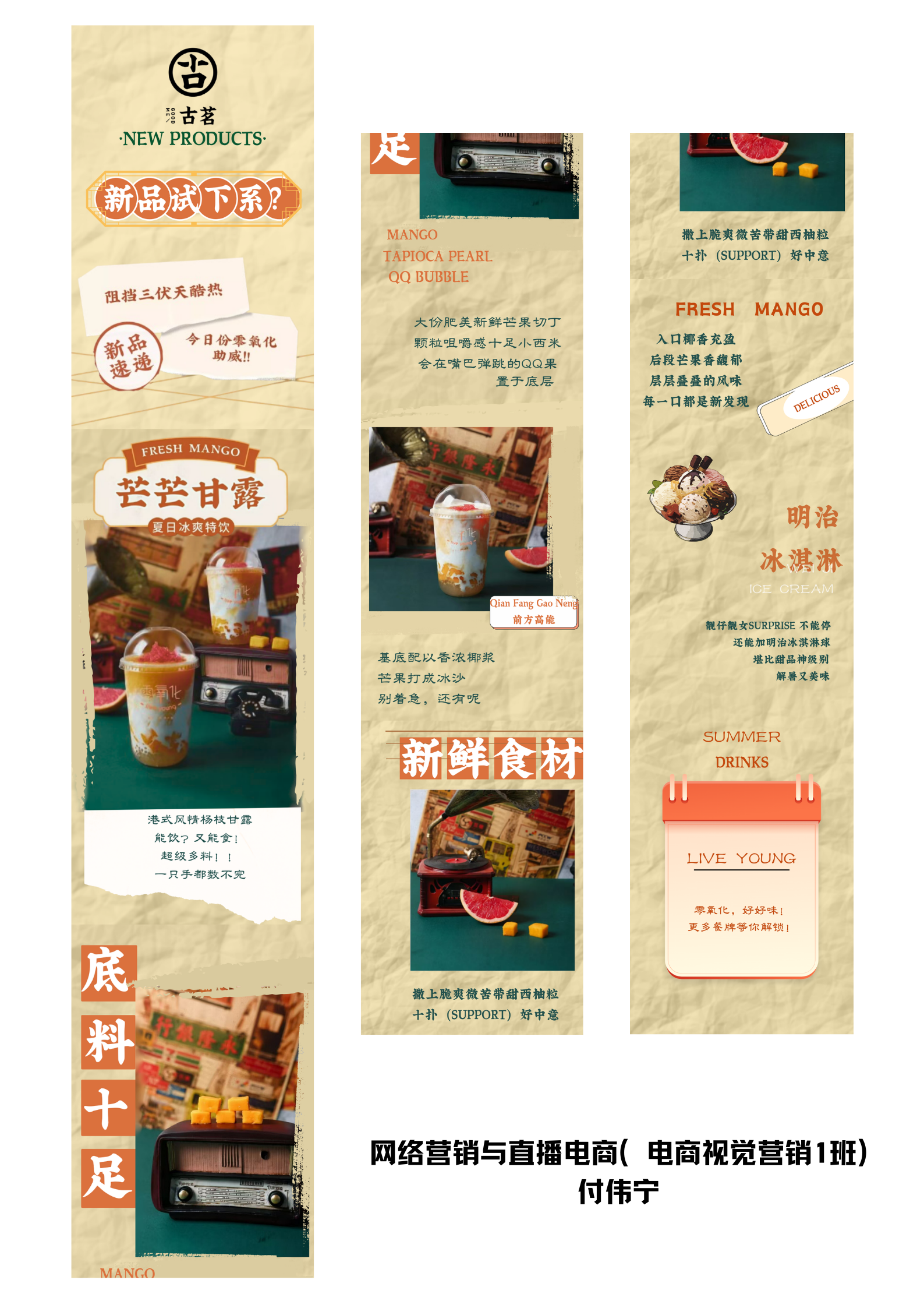 在《直播电商脚本策划》的课程实践中,2023届网络营销与直播电商专业的学生们,以各大电商品牌产品为蓝本,展开了一场营销文案与活动策划的可视化训练。经过一年电商直播理论与实践的学习,学生们已具备一定的品牌认知和产品卖点提炼能力。
