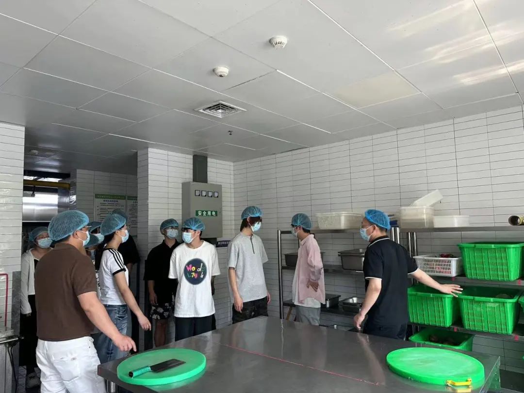 邀请师生代表走进后厨,零距离了解食品加工全过程,餐厅负责人简要介绍餐厅食品安全管理体系后,工作人员现场展示了食材验收、清洗切配、烹饪制作以及餐具消毒等环节。