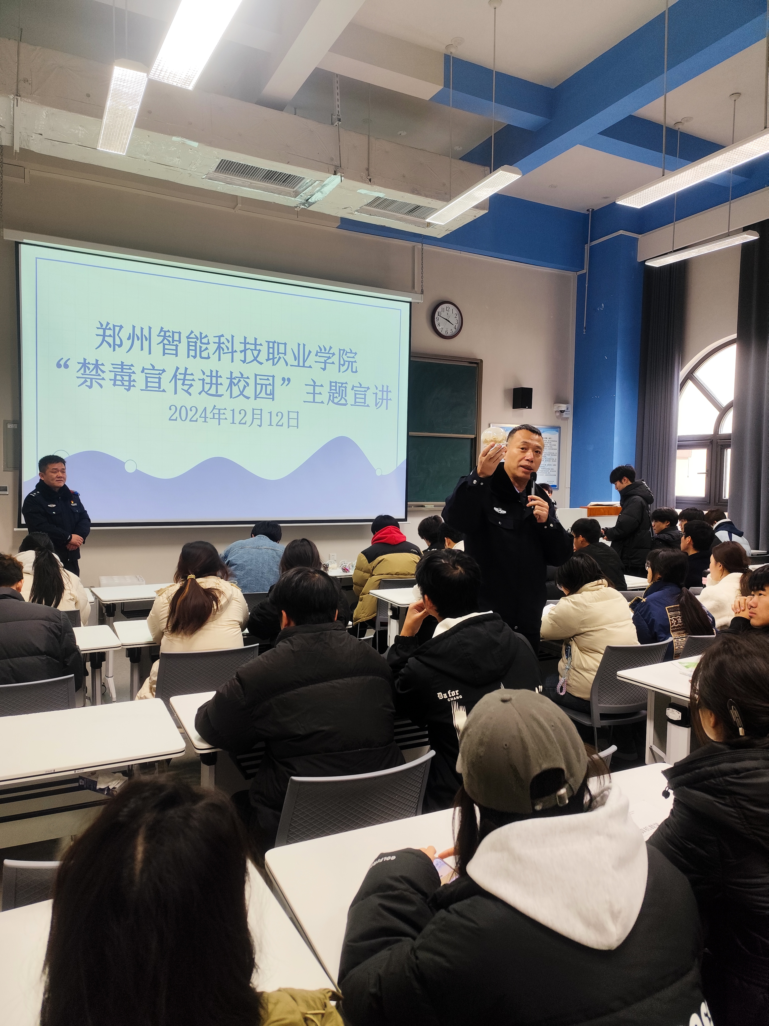 2024年12月12日上午,学院后勤处邀请新郑市公安局禁毒大队王队长开展了一场禁毒知识宣讲活动,旨在进一步加强校园禁毒宣传教育工作,提高学生识毒、防毒、拒毒的能力,筑牢校园禁毒安全防线。