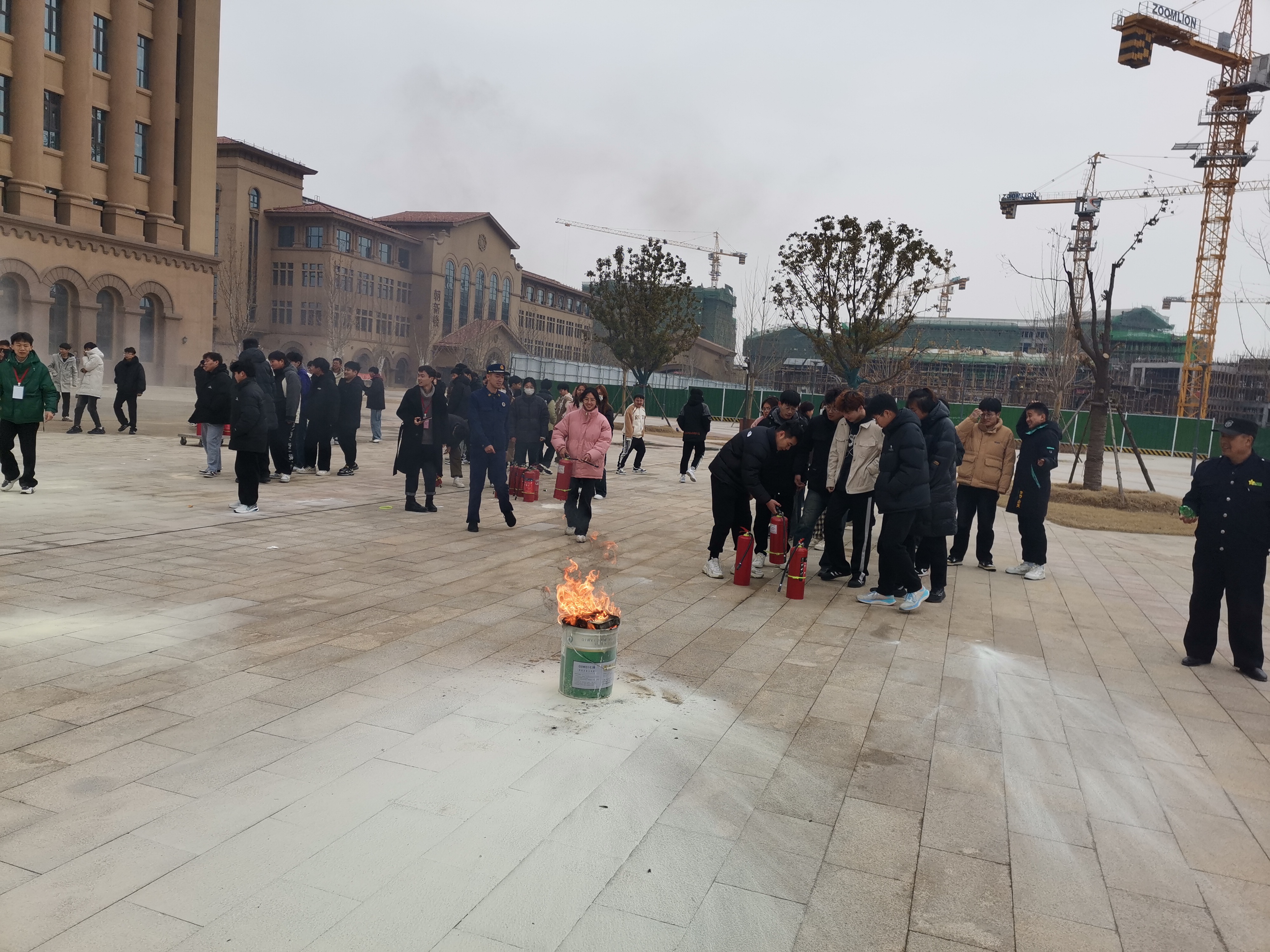下午3时整,安全第一课--学生消防知识培训准时开课。此环节对学生进行消防知识培训,并组织现场疏散演练,然后对学生进行灭火器和消火栓的实践操作,让每一个参与的学生既都能学生扎实的理论知识,又能掌握一门精湛的消防实践技能。同一时间,在学校图书馆前广场,消防官兵正在对校园的餐厅管理人员、商户、保洁,校园安保、维修、绿化及保洁、宿舍管理员进行一场灭火器和消火栓的培训。在学生宿舍楼,另一组消防官兵正在给学生讲解疏散逃生的要点并组织学生疏散演练,让大家熟知逃生路线,做好有序安全疏散逃生。