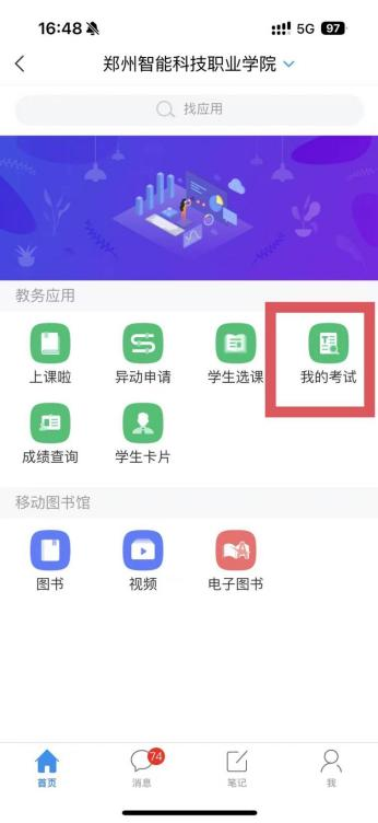 点击右侧“我的考试”查询考场及座号。