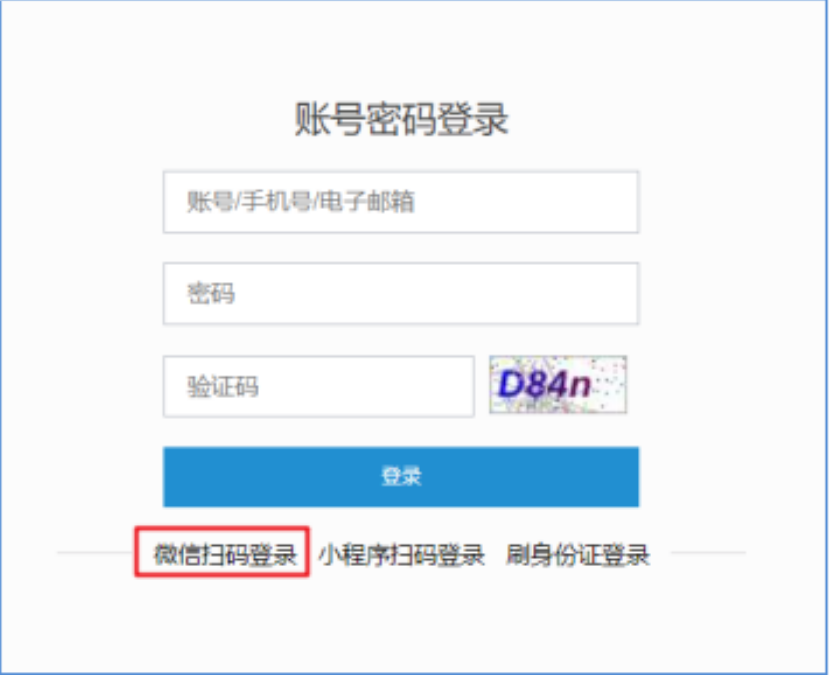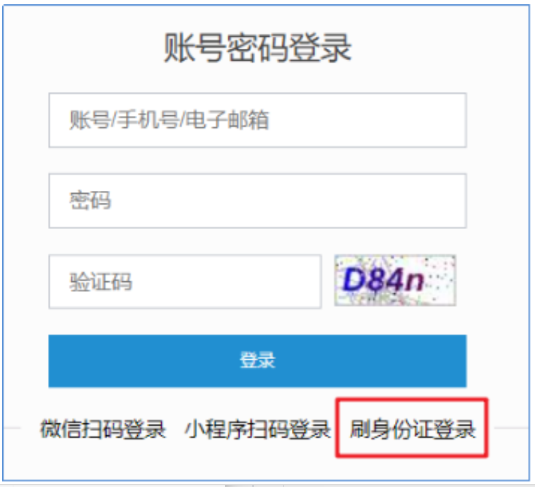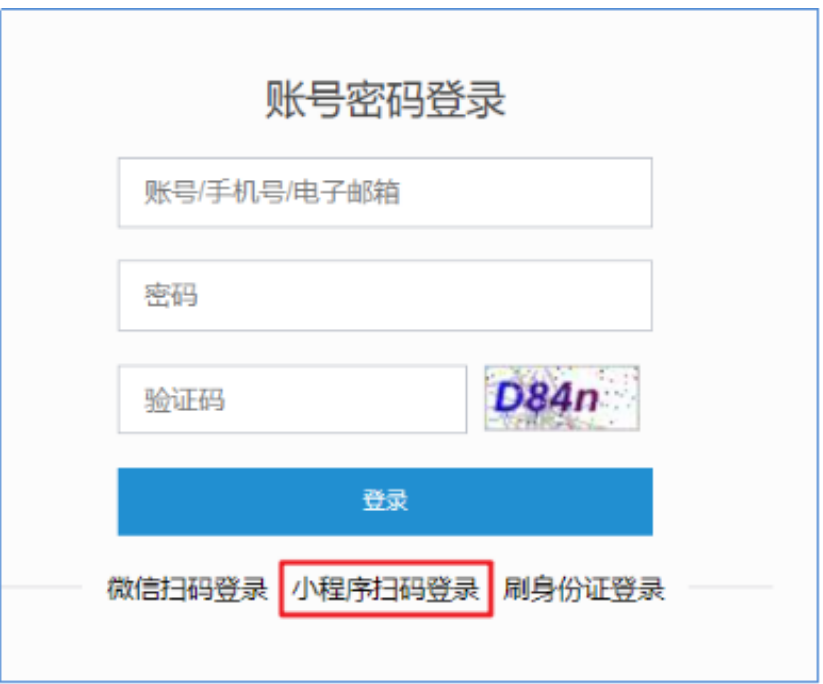 进入登录页面后,有四种登录方式,分别是:账号密码登录、微信扫码登录、小程序扫码登录、刷身份证登录。