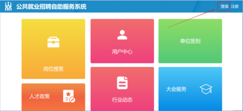 进入公共就业招聘自助服务系统,点击系统右上角的【登录】按钮,进入单位登录页面。