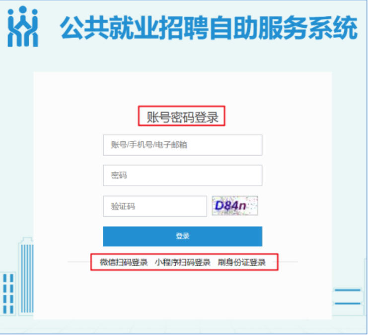点击小程序登录,通过公共就业微信小程序扫码登录。