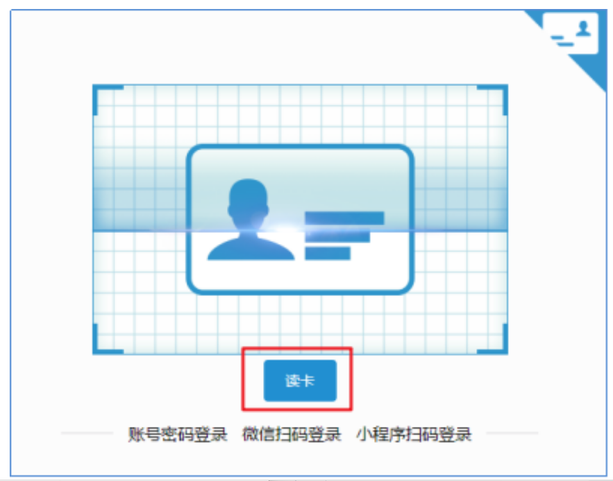 提示:进入身份证登录页面后,把身份证放到机器读取身份证信息的位置上。然后点击【读卡】按钮即可登录系统。