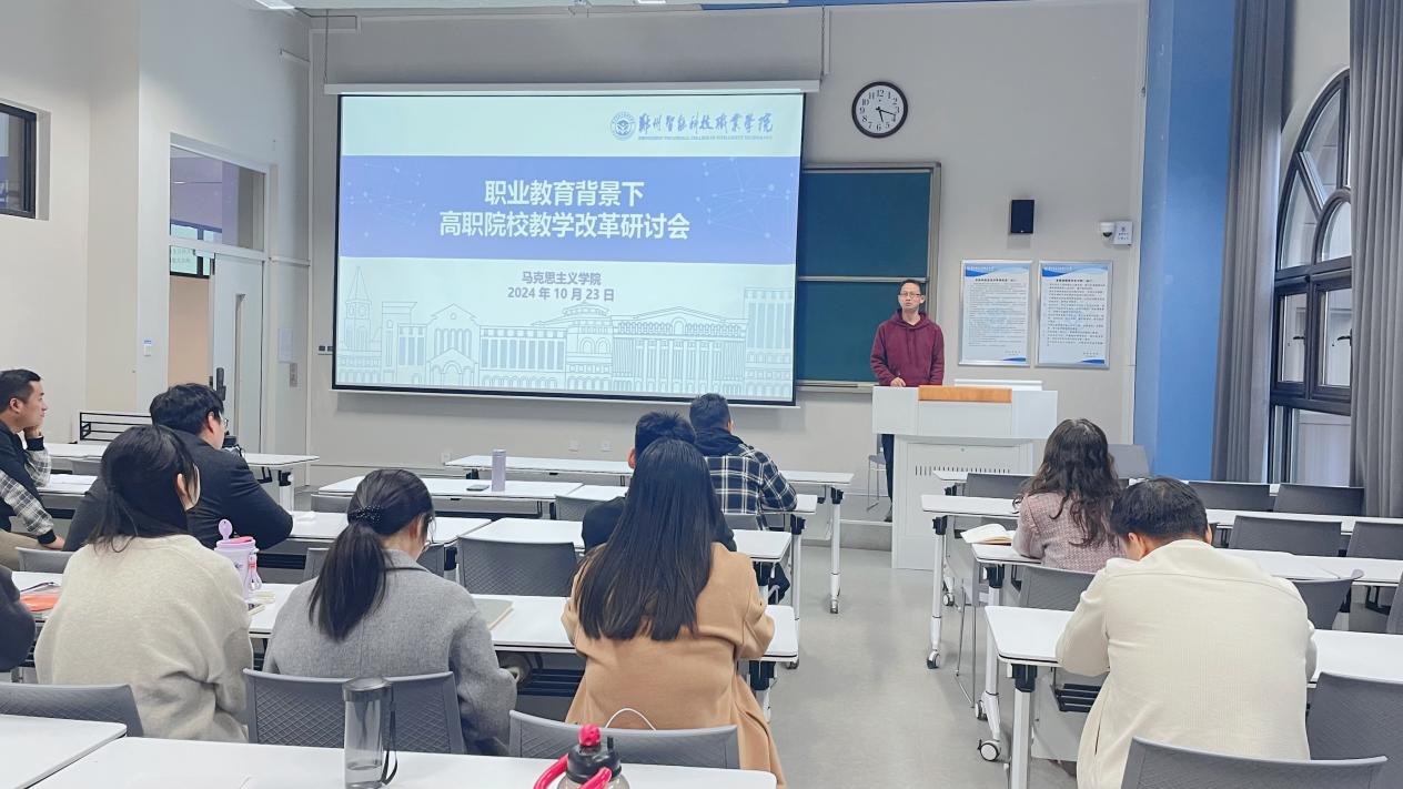 为进一步提高教师对职业教育的认识,适应职业教育的特点,探讨职业教育背景下高职院校教学方法的改革,增强教师教学工作的针对性,提高课堂效果,促进教学质量的提升,也为了更好贯彻落实邓泽民教授和他的团队的教学思想和理念, 10月23日,马克思主义学院在朝新楼101教室举办了职业教育背景下高职院校教学改革研讨会。