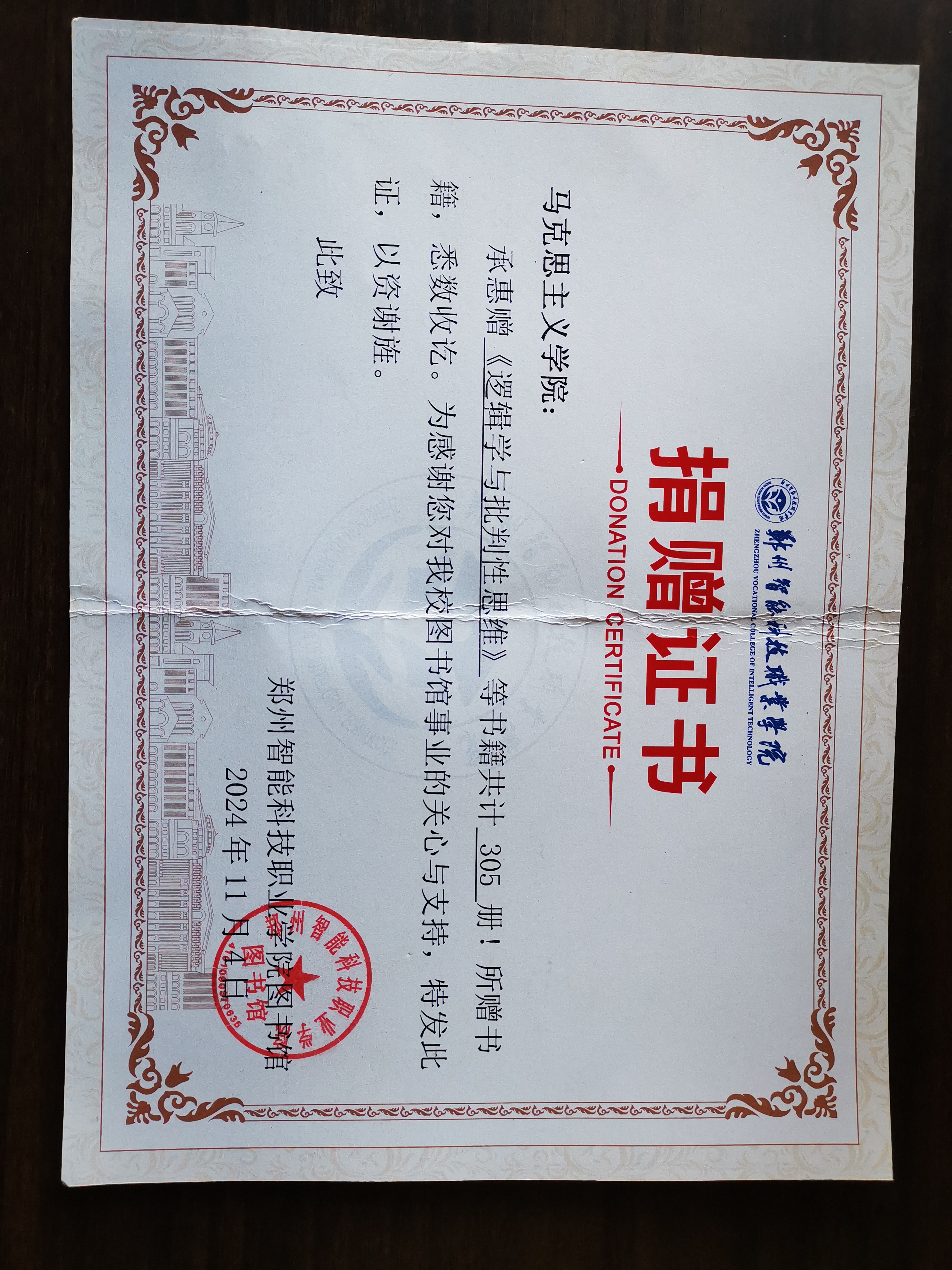 接到捐书通知后,马院老师积极响应,踊跃参加,纷纷向学校捐献图书,11月5号,马克思主义学院把捐献的305本图书送到学校图书馆,表达了马院老师对学校建设和发展的极大关心和高度支持。