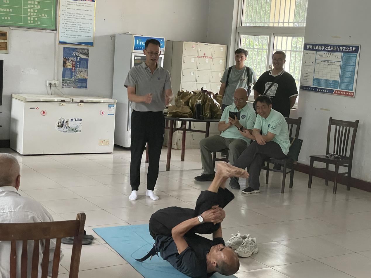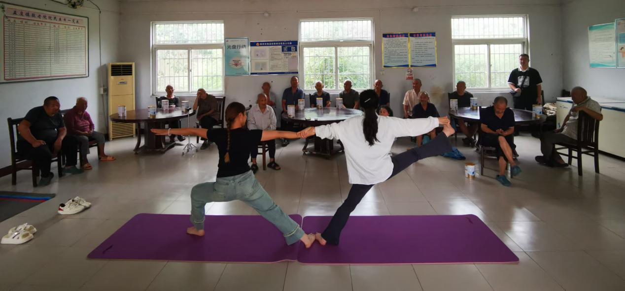 在互动环节,马院院长曾庆福教授进行了健身瑜伽教学,他亲自演示和讲解了一些适合老年人身心的瑜伽体式,老人们主动上场,积极参与,抖动、呼吸、拉伸、滚动等,一个个瑜伽动作,使老人们在锻炼身体的同时,也愉悦了心情,现场气氛十分融洽。