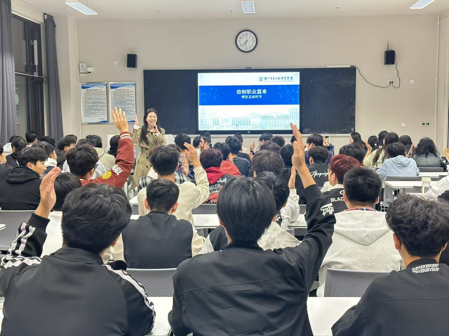 随后,各班辅导员分享了他们的职业经历和成功经验,通过生动的案例分析、互动问答和小组讨论等形式,引导新生深入思考自己的兴趣、优势、价值观以及未来的职业方向。