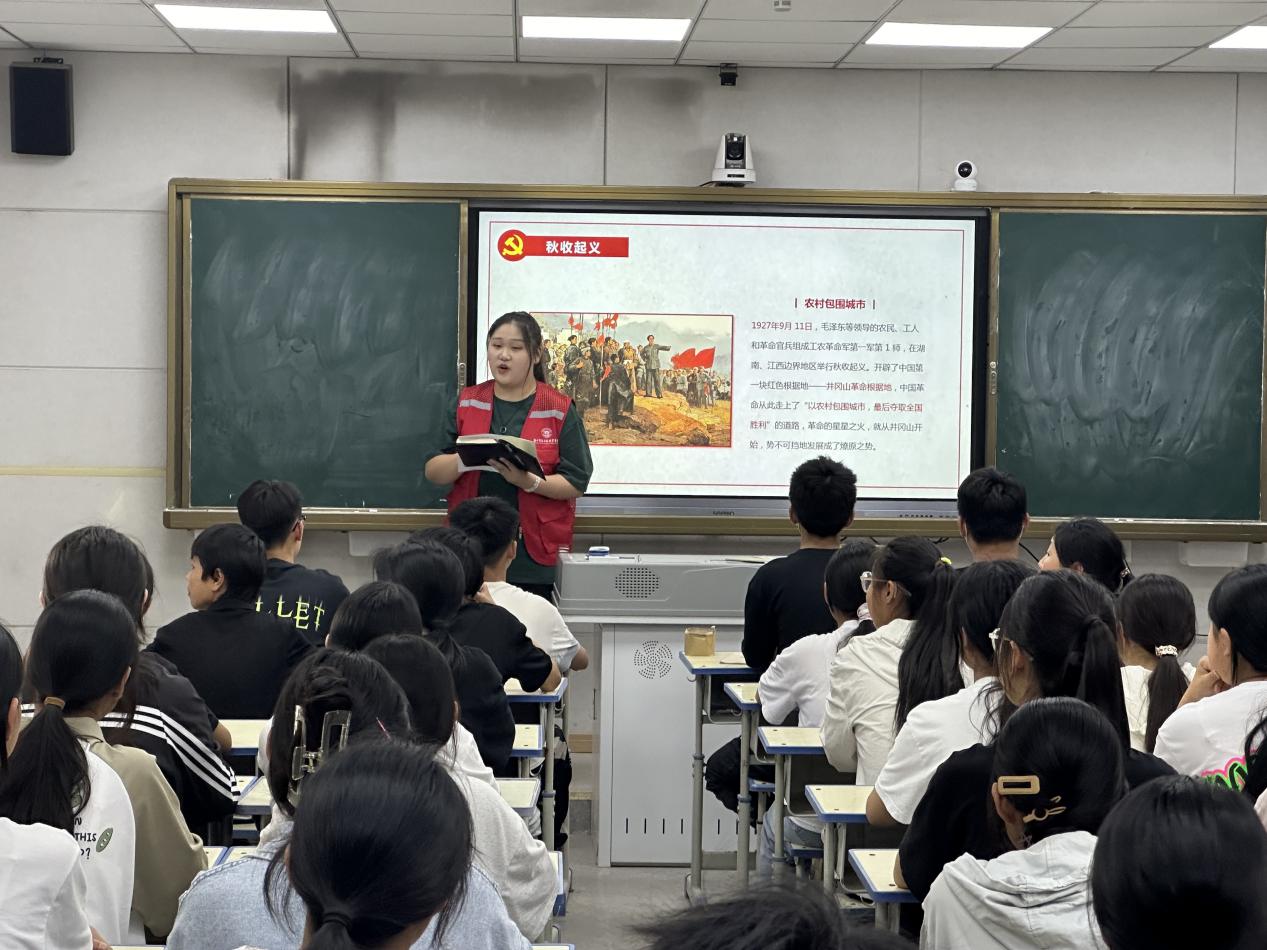 首先宣讲员邓佳璇以充满激情的语言向同学们介绍了井冈山精神的内涵和历史背景。她深入浅出地阐述了井冈山精神是我们党在艰苦卓绝的革命斗争中形成的宝贵精神财富,是我们党不断从胜利走向胜利的强大精神支柱。