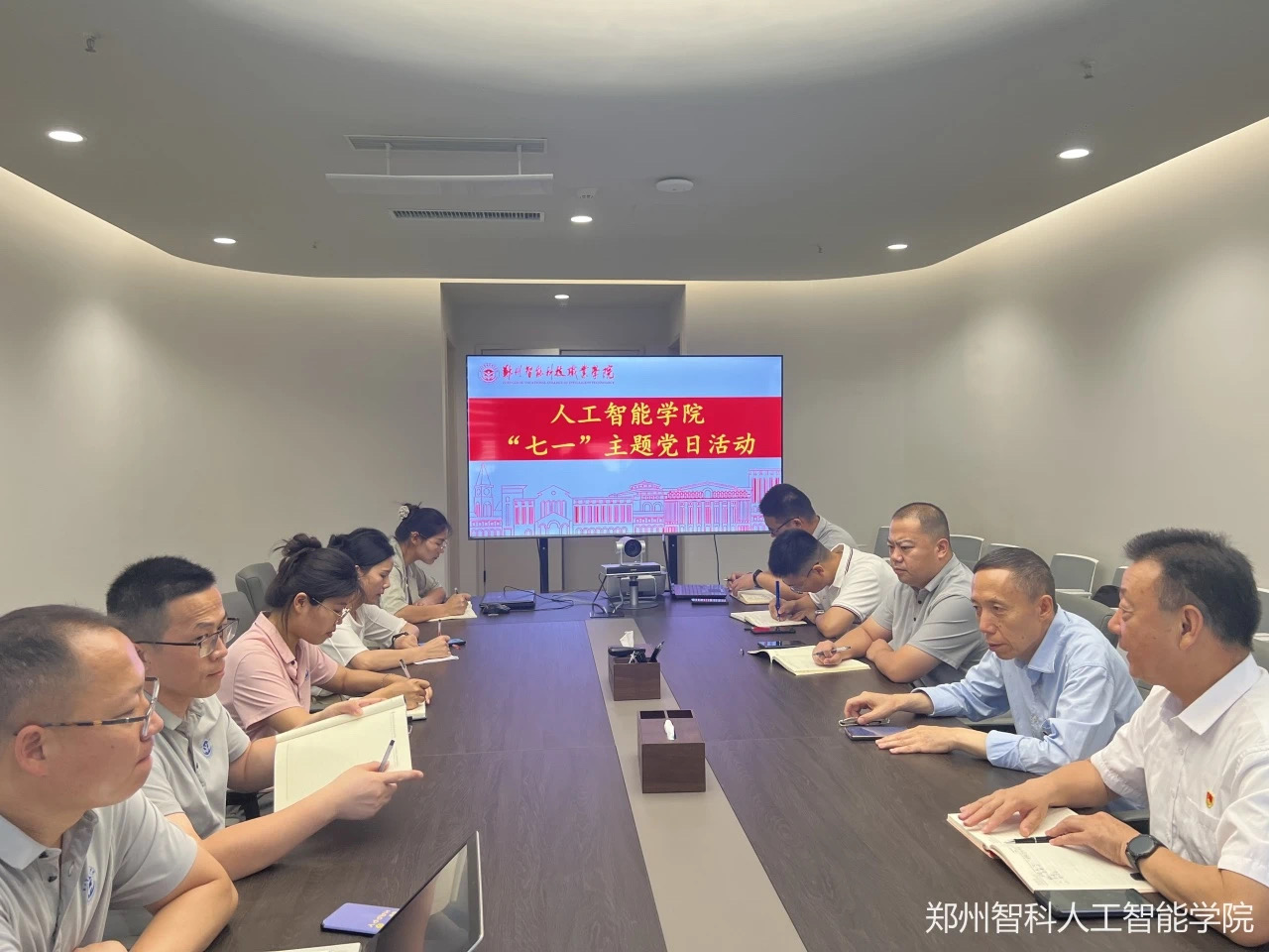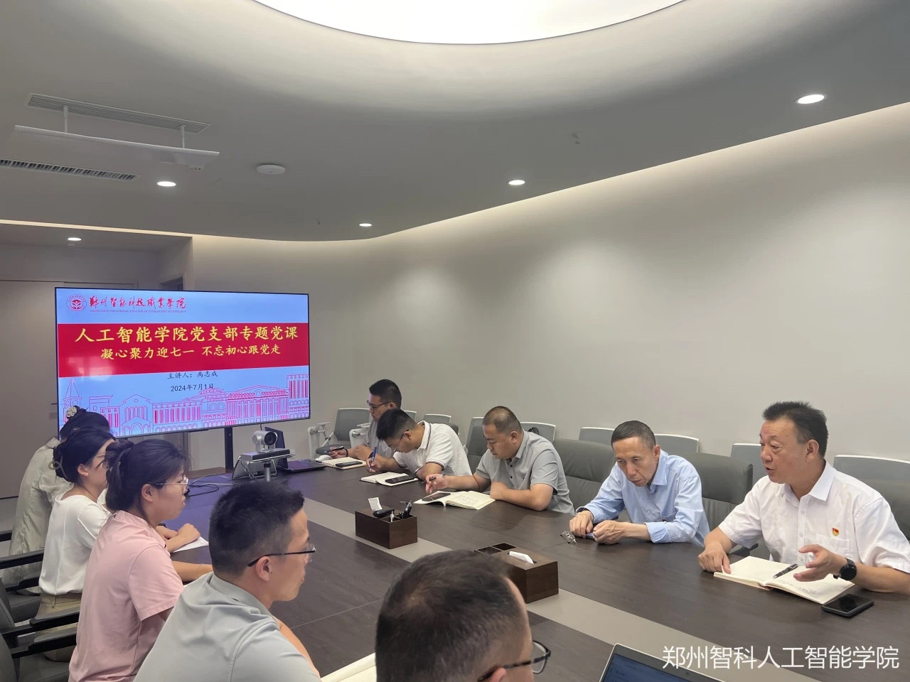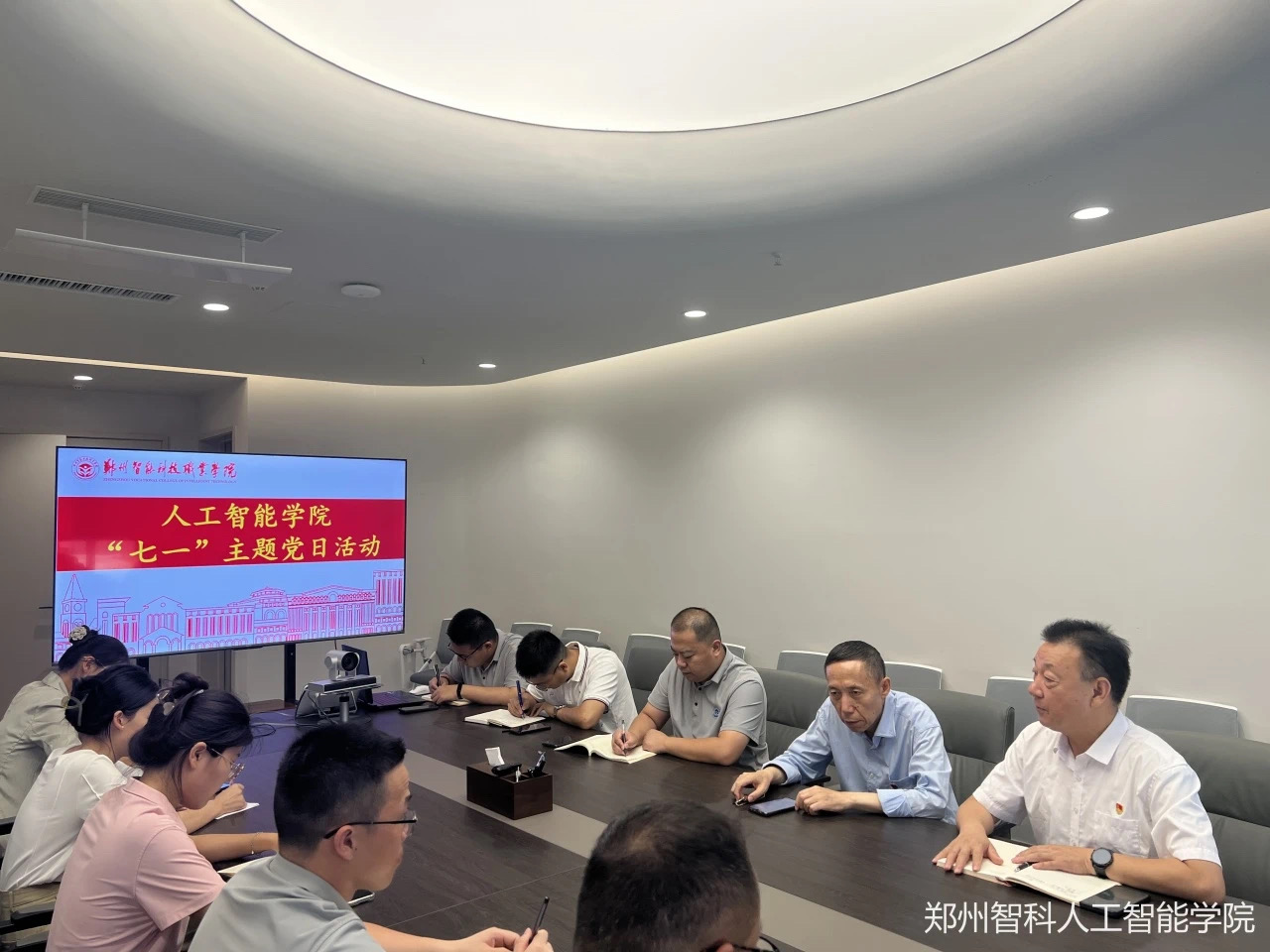 为庆祝中国共产党成立103周年,弘扬伟大建党精神,推动党纪学习教育走深走实,充分发挥党建引领事业高质量发展作用,激励广大师生党员奋发有为、担当作为,7月1日,人工智能学院党支部开展系列“庆七一”主题活动,学校党委委员、副校长韩万兵和全体教职工党员及入党积极分子共同参加。活动由党支部书记禹志成主持。