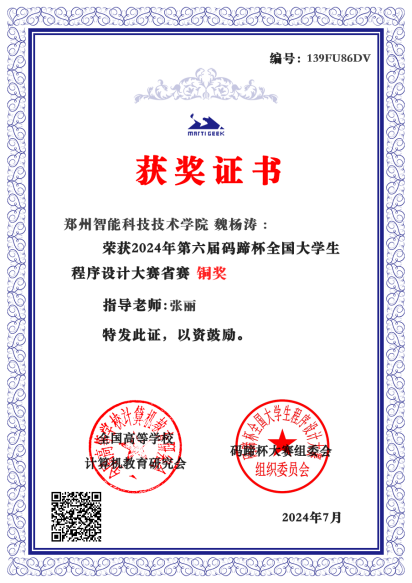 发布日期:2024-07-05 访问次数:喜报!我们在第六届“码蹄杯全国大学生程序设计大赛”中斩获佳绩!