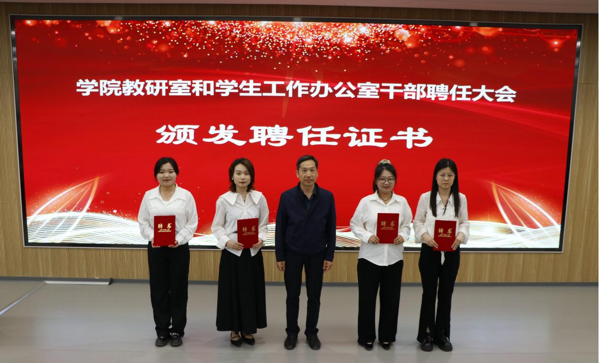 会上,人事处处长李冬宣读了《关于张方超等职务任命的决定》,各二级学院负责人为本学院受聘干部颁发聘任证书。