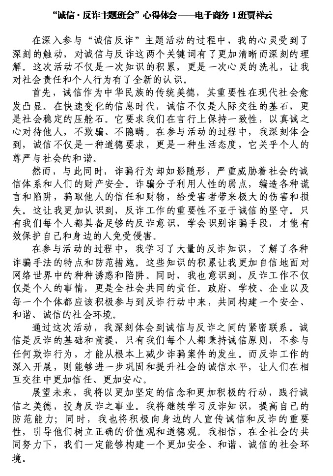 此次“诚信·反诈”主题班会作为我院资助育人系列活动之一,不仅提高了同学们的防诈骗意识,同时帮助同学们树立了正确的金融观、消费观。有力提升了我院资助育人工作的实效性,推动构建“解困-育人-成才-回馈”的良性育人文化氛围。