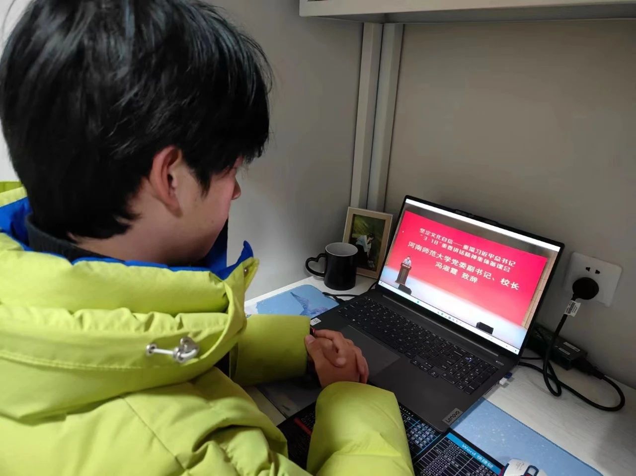 为学习贯彻习近平文化思想和习近平总书记关于思政课建设的重要论述,贯彻落实《关于推进大中小学思政课一体化建设的实施意见》,3月9日下午,省委教育工委、省教育厅开展 2024 年春季开学思政第一课暨大中小学思政课集体备课活动。当日,我们各学院积极组织学生观看“坚定文化自信——重温习近平总书记“3.18”重要讲话精神”主题直播。
