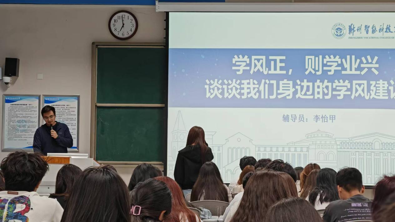 为厚植优良学风土壤,涵养向上向好的学习生态,近日传媒学院辅导员李怡甲老师主持召开“学风正・学业兴”主题班会。班会以互动问答开篇,李怡甲抛出“优良学风班级的特征”“理想学习氛围的模样”等启发性问题,迅速点燃现场思辨氛围,同学们结合自身观察与期待,围绕“学风”内涵展开坦诚交流,碰撞出关于班级建设的多元思考。
