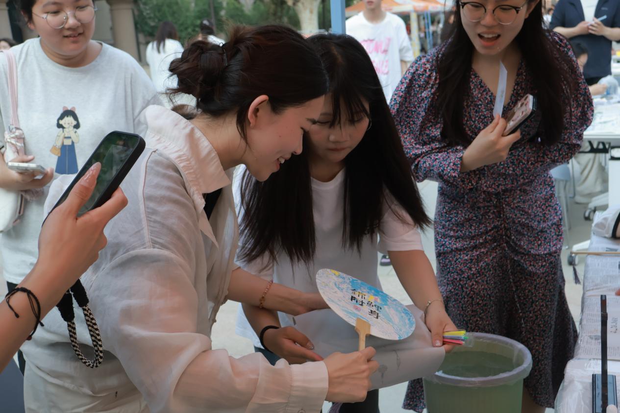 古法漆扇DIY:同学们挥洒创意,在素白扇面上描绘出独一无二的艺术作品,体验非遗美学的独特魅力。