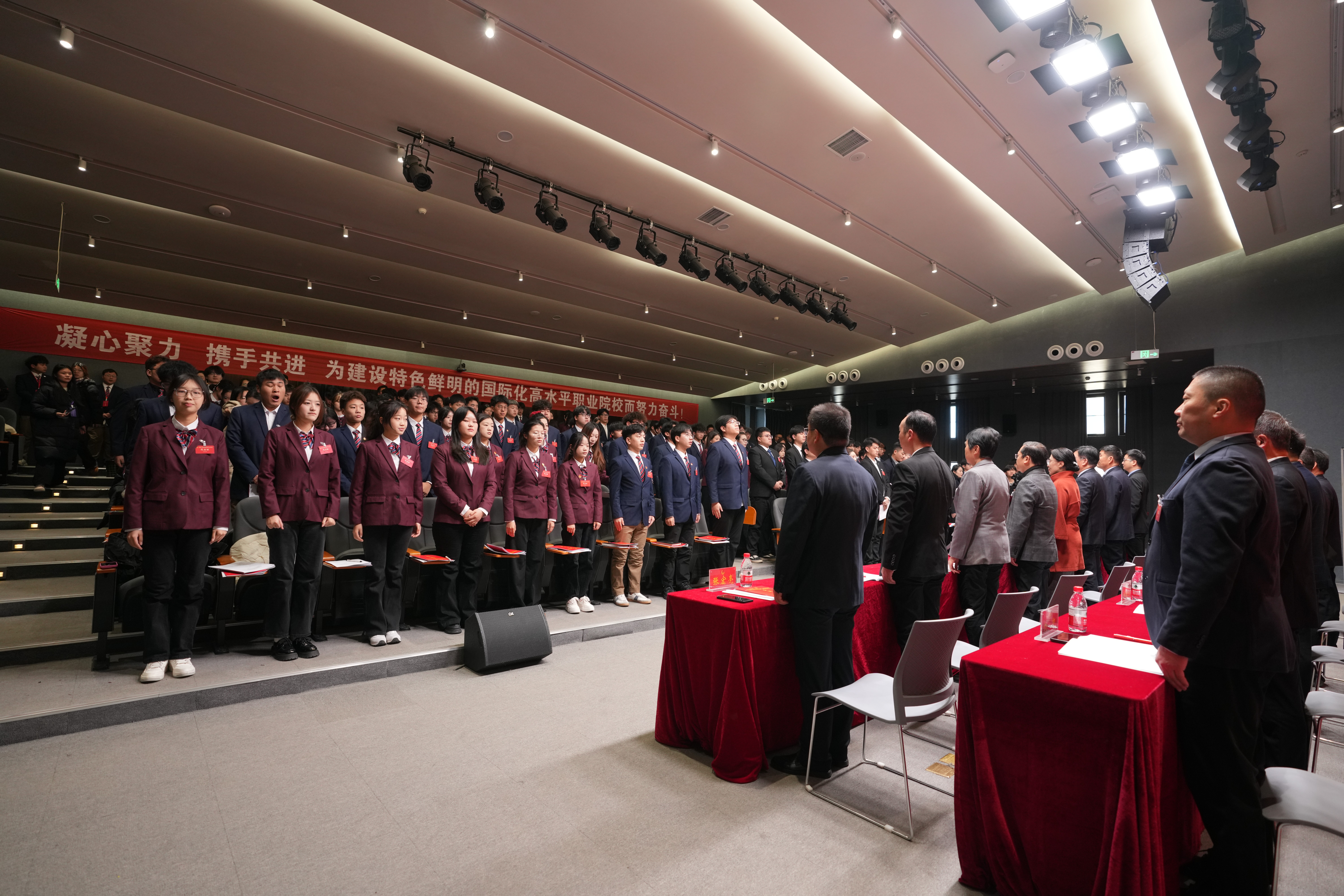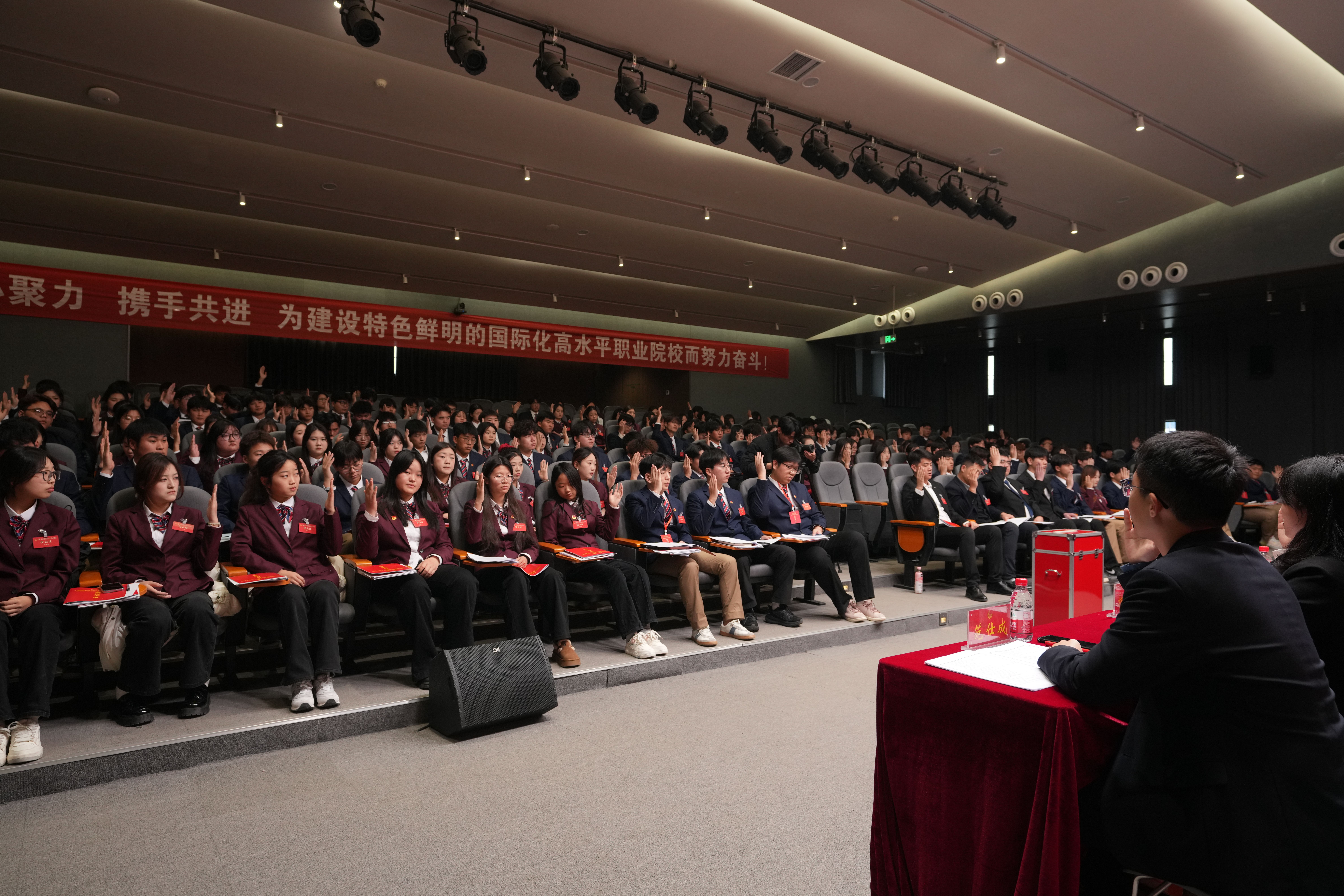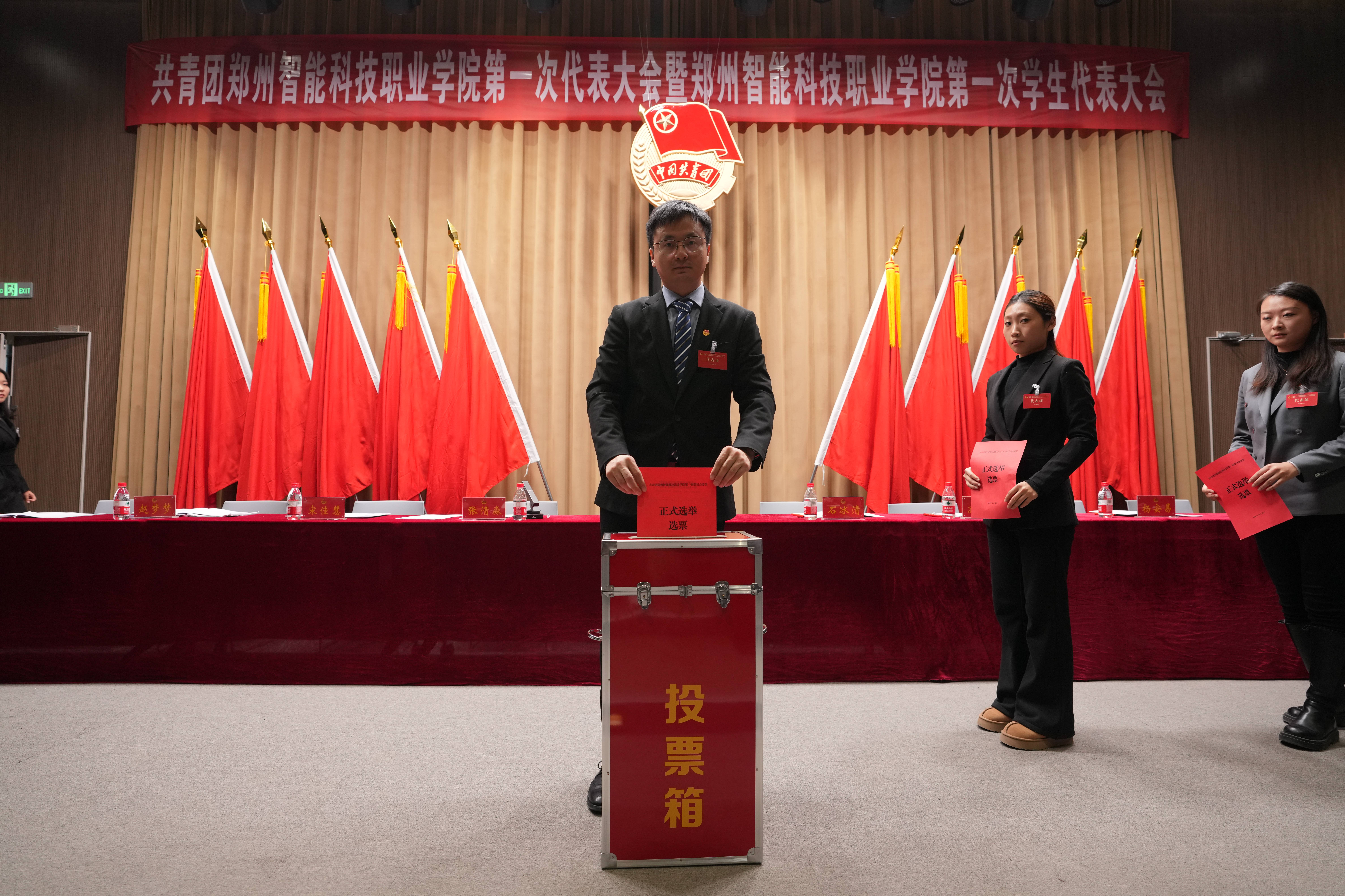 崭新的蓝图已经绘就,时代的号角催人奋进。会议号召全体青年学生要紧密团结在以习近平同志为核心的党中央周围,在学校董事会、校党委和上级团组织的正确领导下,高举旗帜、紧跟党走,勤于学习、乐于奉献,凝心聚力、务实重干,为把我们建设成为特色鲜明的国际化高水平职业院校,为中原更加出彩,实现中华民族伟大复兴的中国梦而不懈努力,奋力谱写建功新时代的壮丽青春篇章!