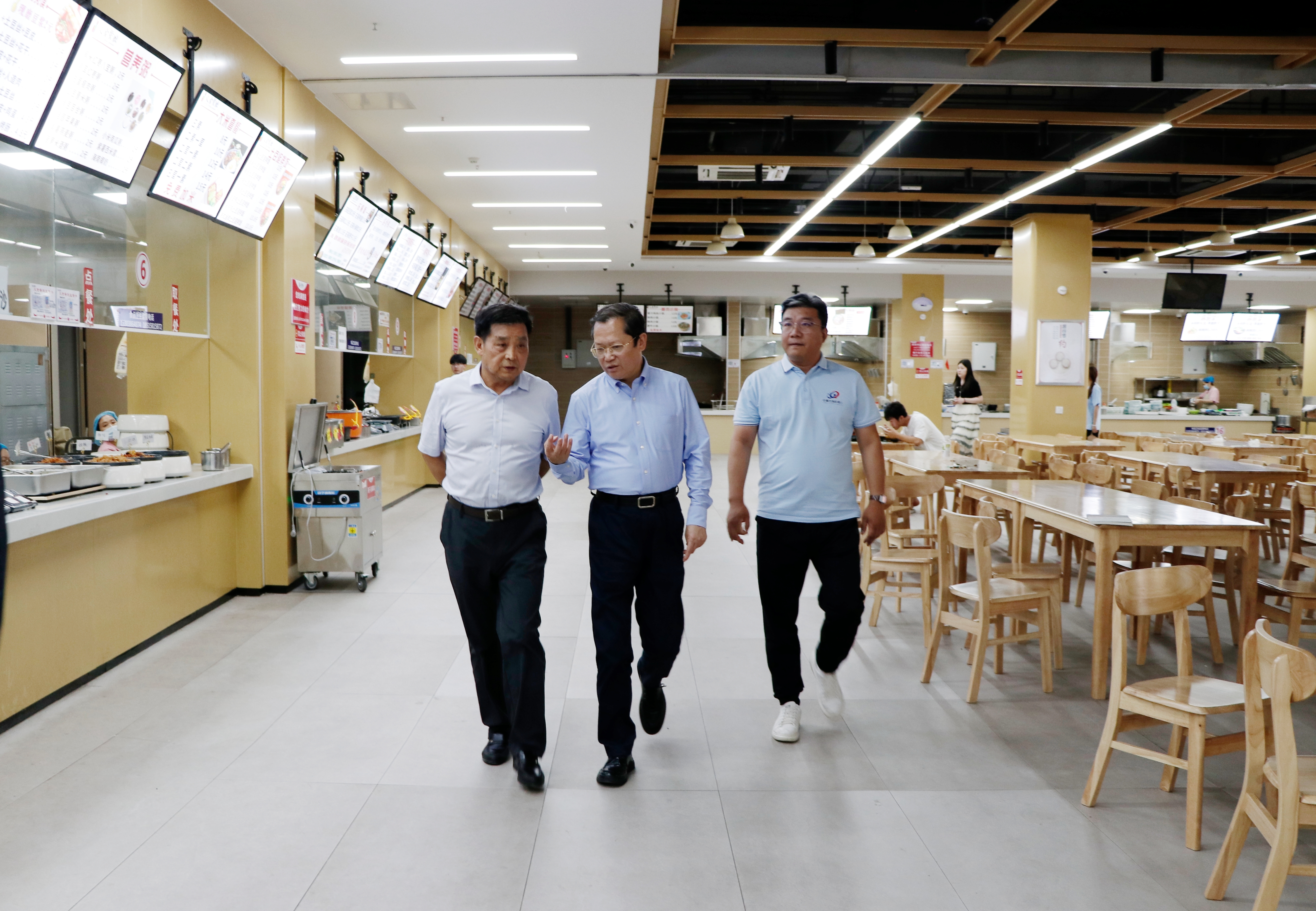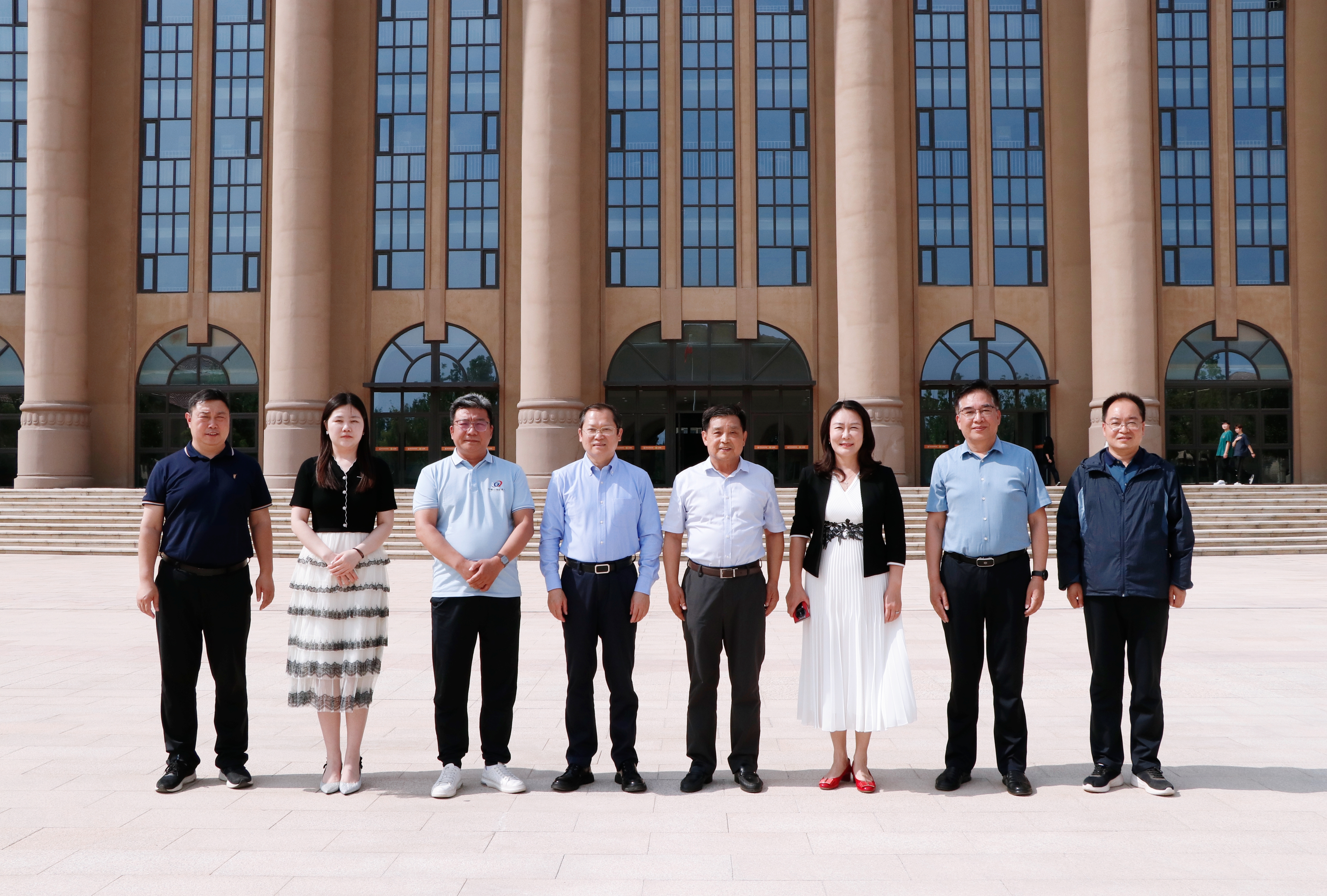 在王广国的陪同下,丁大勇和赵健一行先后参观了我们艺术中心、教学楼、餐厅等场所,随后双方在艺术中心会议室召开座谈会。