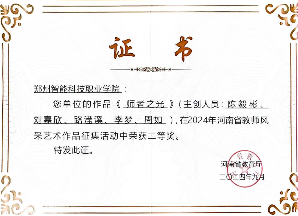 教育部、河南省教育厅公布2024年河南省教师风采艺术作品征集活动获奖名单,我们传媒学院教师陈毅彬带领周如、刘嘉欣、李梦、路滢溪4位同学创作的作品《师者之光》。