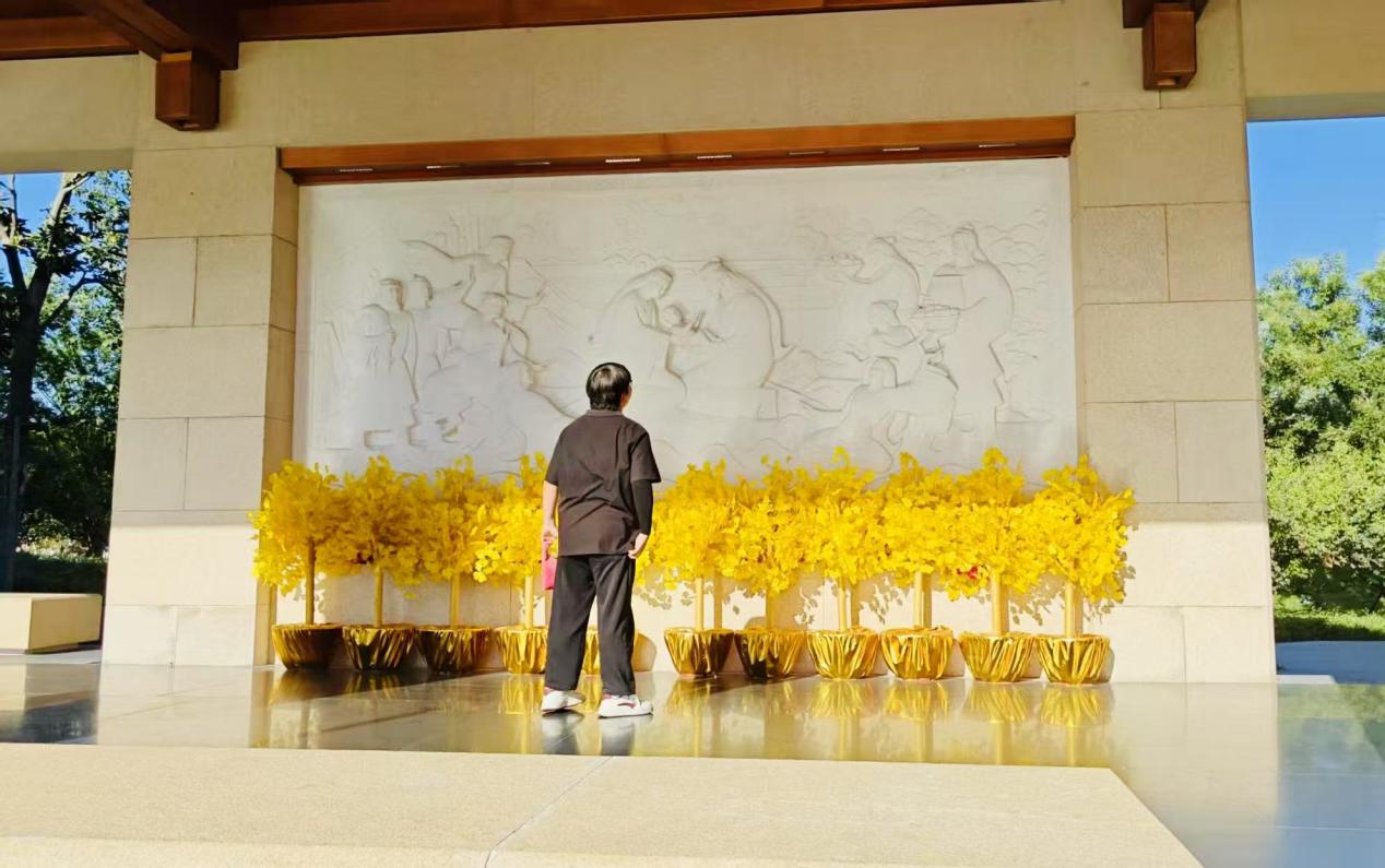 实践队的第三站,来到中华民族的精神家园——黄帝故里。在中华姓氏广场,姓氏石碑镌刻着血脉传承的密码;轩辕故里祠内,古朴建筑与文物展品诉说着华夏文明的滥觞;黄帝宝鼎坛上,巨鼎巍峨象征着中华文明的绵延不绝。队员们沉浸式感受"团结统一、勤劳勇敢、自强不息"的黄帝文化内核,在姓氏寻根中体悟"家国同构"的民族情怀。